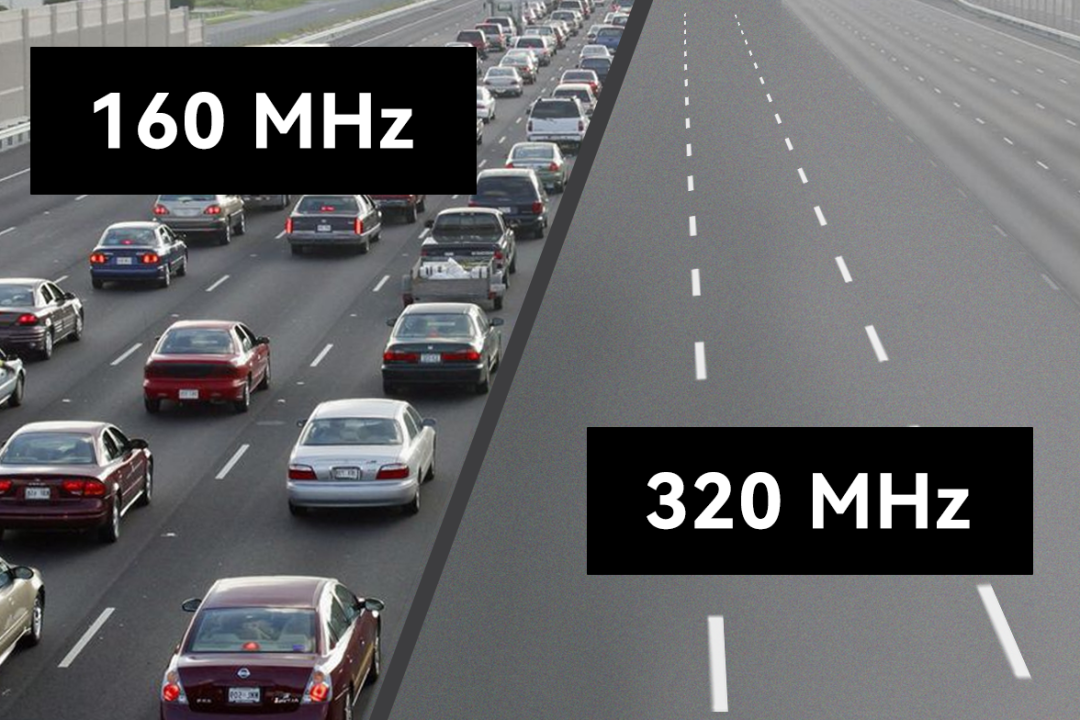 wifi 7 相比 wifi 6,还能支持 6 ghz,能提供的最大频宽从 160 mhz 提升到了 320 mhz,理论上传输速度直接能够翻倍。