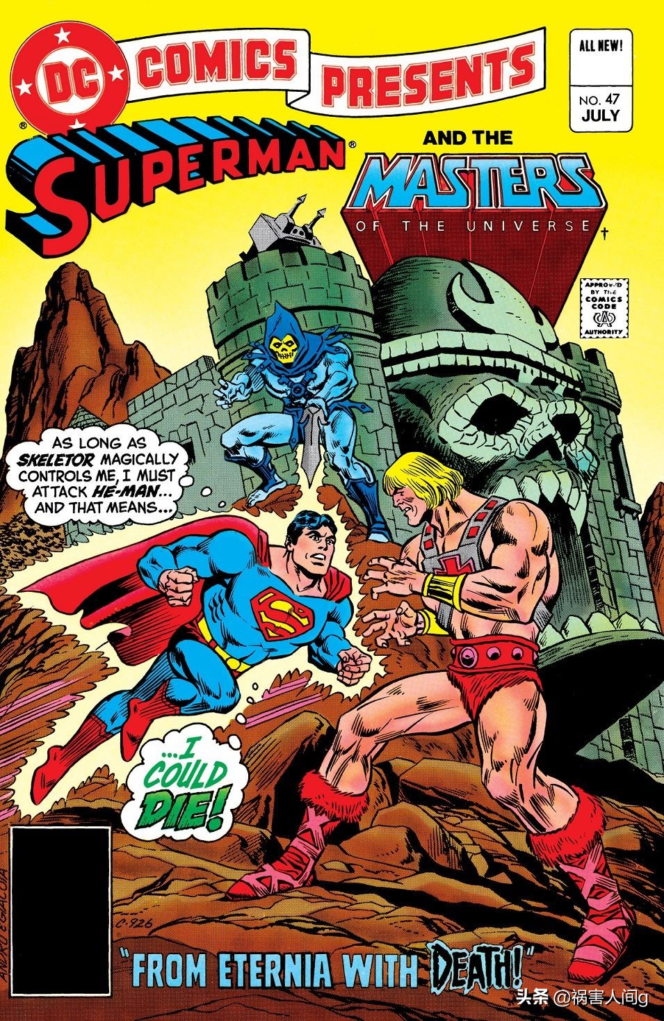 除了玩具配套的迷你漫画以外,dc公司在1982年漫画《dc漫画礼物》#47故事“从永恒到死亡”中通过将人气英雄超人穿越到希曼的永恒世界,与希曼相遇并帮助希曼击败了骷髅王,开始将希曼引入了dc多元宇宙。这是dc漫画正式出版的第一部希曼漫画。