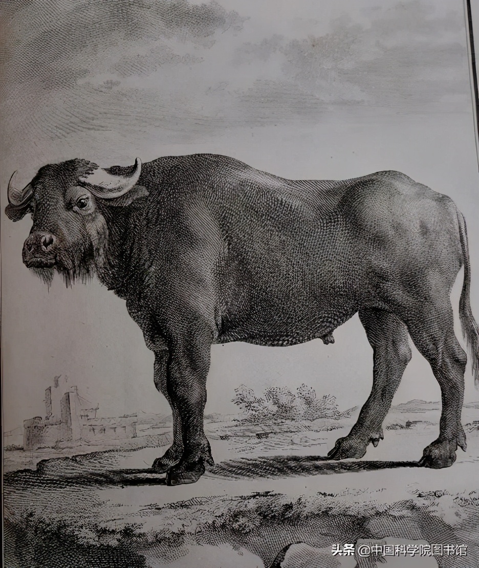 中国科学院文献情报中心藏1749-1789年出版的36卷《自然史》。作者是十八世纪法国著名博物学家、作家布封(georges louis leclere de buffon,1707-1788)。该书包括《地球形成史》《动物史》《人类史》《鸟类史》《爬虫类史》等,其中前15卷涉及四足动物,以详细科学文章和一般性文章,介绍动物分布、繁殖习性、变异、行为和生活环境等知识,每卷均附有相关版画。不同于林奈对命名与分类的看重,布封侧重认为博物学所描绘的是有关自然秩序的宏大画面,人为分类难以将之涵盖。布封在第11卷谈及牛科动物知识时,首先便对18世纪已命名的牛科物种进行了重新辨析。具体到“水牛属”,布封则从“形态特征”、“重量”、“腹腔结构”、“骨架”等方面展开介绍,并加入对动物内部、外部特征的解剖性描述。