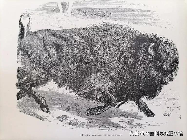中国科学院文献情报中心藏1885年版《自然史·插图版》,封面材质为维多利亚时代的浮雕布,上有装饰性的字体,三面书口刷金。内含由伍尔夫(g. wolf)、科尔曼(w.s. coleman)等绘制的大量黑白插图。作者约翰·乔治·伍德(john george wood,1827–1889)是维多利亚时代著名的牧师-自然学家,也是一位多产和成功的自然史作家。此书涵盖了脊椎动物、软体动物、环节动物、辐射对称动物、原生动物等。本书第一部分涉及瘤牛(zebu)、水牛(buffalo)、欧洲野牛(aurochs)、非洲水牛(cape buffalo)、美洲野牛(bison)、牦牛(yak)、麝牛(musk)等牛科动物。伍德试图为大众读者写作,用简明的语言表达准确的科学知识。以“美洲野牛”为例,伍德所撰写的科普知识,不仅包括这一物种的形态特征、生长习性、栖息环境等自然科学内容,也涉及19世纪印第安文化、人类捕猎行为等社会科学知识。