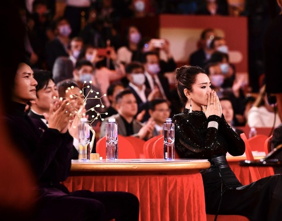 也许是被前辈们为艺术而奋斗一生的精神所感动,巩俐在台下多次落泪,还用手擦拭眼角的泪水,神情十分哀伤。