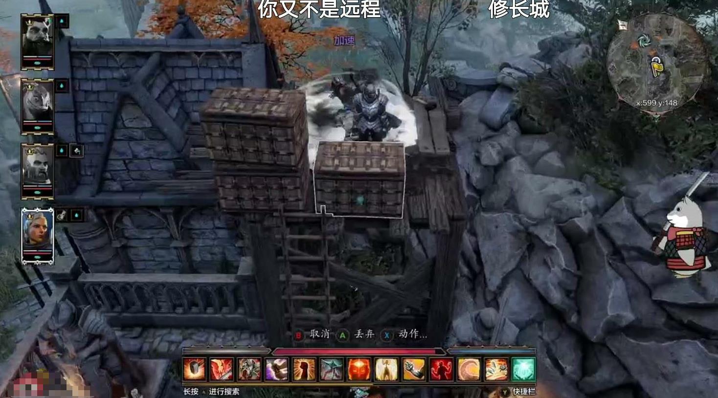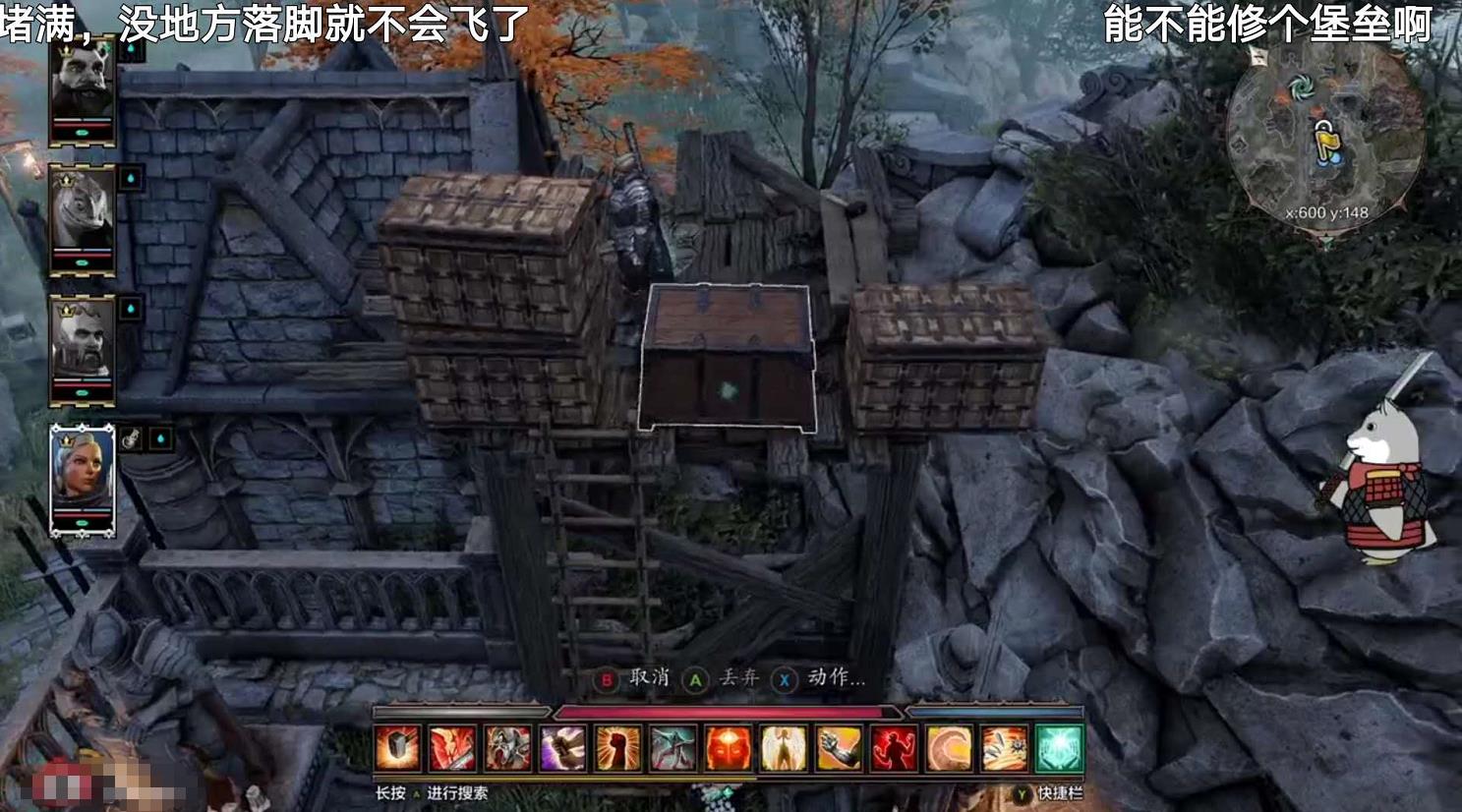 他从物资船中搬运了大量木箱,把梯子通往高台的路用木箱堵住,然后站在箱子内侧向怪物投掷物品,活生生把角色扮演游戏完成了"塔防"游戏。由于摆放木箱时需要进行一定角度的旋转,一些粉丝也调侃道:简直就是俄罗斯方块。