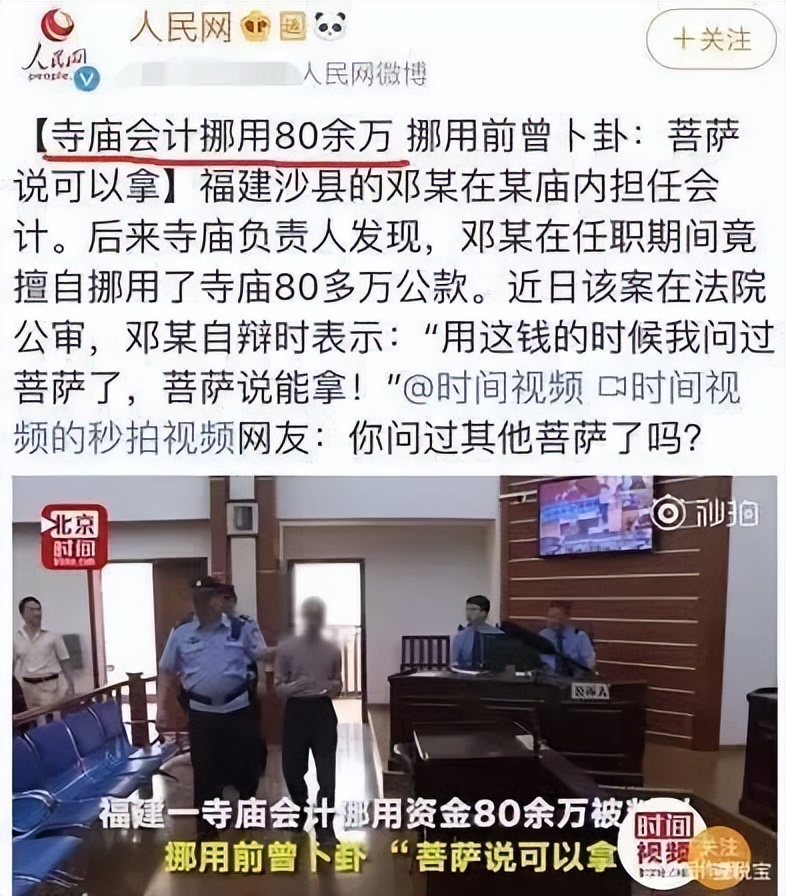会计管理中最基础的要求——会计和出纳不得由一人兼任;打开功德箱时必须有三人在场,所谓「三把钥匙」——有些小庙都难以做到。