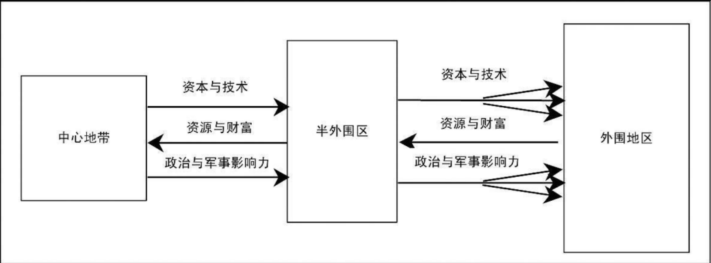 但由于发展极度不平衡以及国际形势的瞬息万变,部分外围地区不满于中心地带的剥削和压迫而迅速崛起,给了中心地带极大挑战。为了防止这种情况发生,中心地带开辟了“半外围区”作为缓冲。