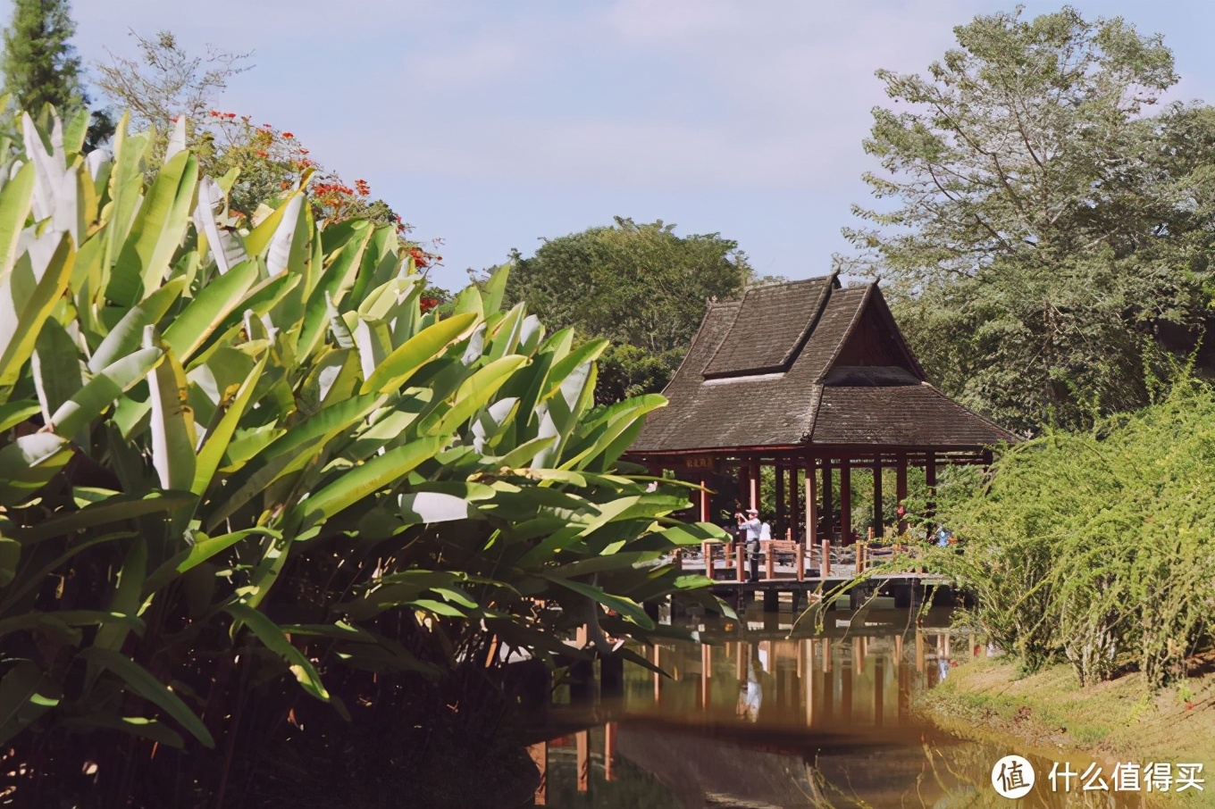 不用买电瓶车!公园不大,只要体力不是太费,完全可以步行!有的旅行团直接坐观光车到公园尽头看大象表演,然后坐观光车回去,就很无聊。曼听公园总体还是很好逛的,我们去的时候是下午四点多,刚好一天中阳光最温柔的时候,超级暖和。曼听御花园是傣王以前的御花园,也是版纳最老的公园啦,建筑风格很有泰国寺庙的感觉。