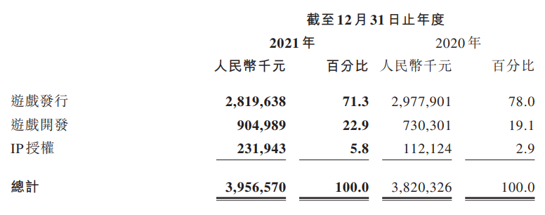 中手游2021年的收入中,游戏发行业务营收28.19亿元,同比下降5.3%;游戏开发业务营收9.05亿元,同比增长23.9%;ip授权业务营收2.32亿元,同比增长106.9%,该增长得益于2021年获得的《仙剑奇侠传》ip授权。