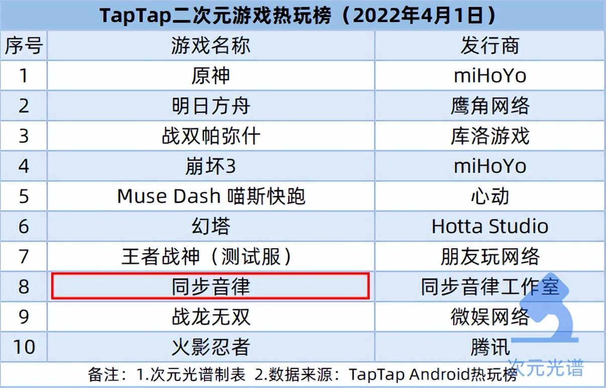 本周新入榜的游戏为《同步音律》,这是一款独立音游,由同步音律工作室开发。截至4月1日,在taptap上累计411.7万次下载量、194.1万关注数,评分9.1分。
