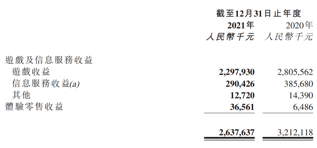 创梦天地2021年的收入中,游戏及信息服务收益26.01亿元,同比下降18.9%,体验零售业务营收同比增长463.1%至3656.1万元。游戏业务收入下降主要是由于部分游戏收入减少,以及期内公司对游戏业务板块的存量调整和优化,逐步终止不符合公司游戏业务战略的产品。