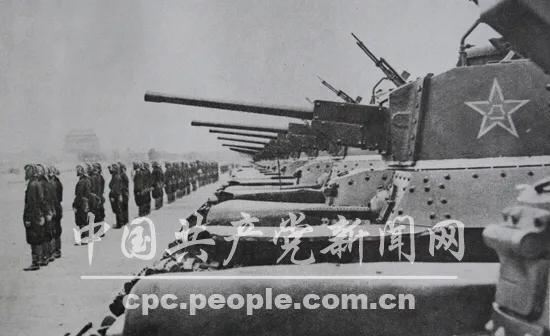参加开国大典阅兵的受阅部队,由步兵第119师、炮兵第4师、战车第1师、骑兵第3师、步兵第207师第619团、空军第1个飞行中队,以及海军部队代表等1.6万余官兵组成,共动用飞机17架、火炮19门、坦克和装甲车152辆、汽车222台、军马2344匹。其中,4架飞机是携弹飞行,开创了阅兵史上的先例。让世界对中国刮目相待!