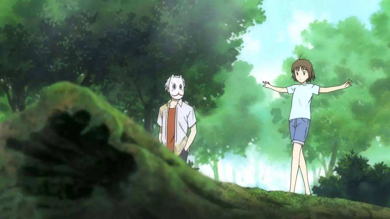 夏日,葱绿的森林。阳光透过层层叠叠的树叶,洒落一片流光。迷失在“山神之森”的小女孩遇到了戴着狐狸面具的少年,明明看不到眉眼,却觉得是个可靠而温暖的人。少年用树枝牵着小女孩走出森林,却始终不让小女孩碰到他。