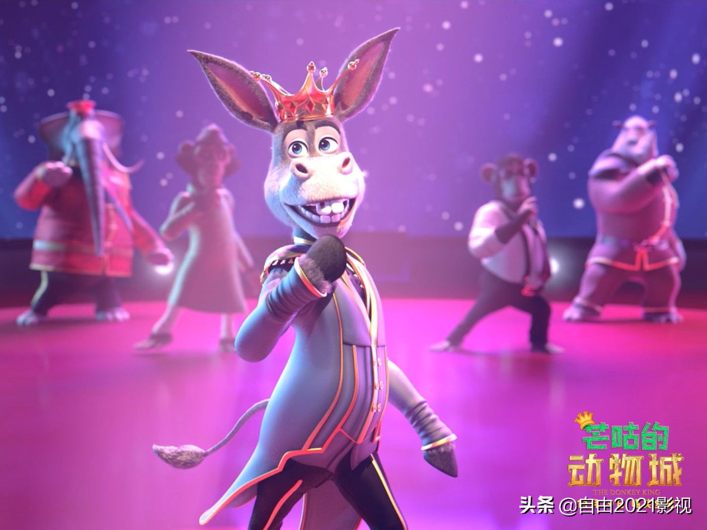 爆笑合家欢动画电影《芒咕的动物城》将于2021年11月19日全国上映,并同步发布定档预告与定档海报,电影主人公是一只名叫芒咕的平凡小驴,身着帅气王者制服,呈现逗趣国王姿态,在动物城内带领众多动物开启一段风趣爆笑的冒险之旅。