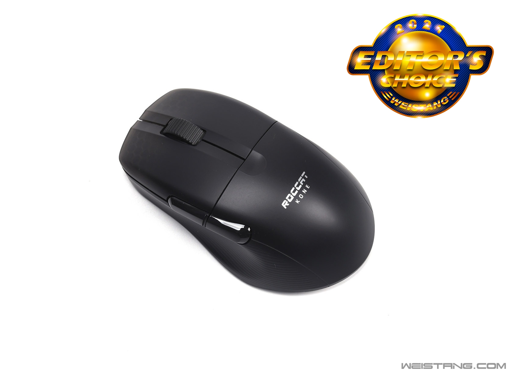 这款鼠标绝对证明了一线级游戏外设品牌的设计以及产品把控实力,全新bionic shell蜂巢轻量化设计结构,在此基础上加入了蓝牙&2.4g无线配置,同时采用了订制的paw3371引擎。kone pro air无线游戏鼠标在坚持不打孔的情况下做到了鼠标的轻量化,重量为75g,而有线版本的kone pro仅为66g。冰豹多年来稳定的发挥带来了滚轮与按键优秀的手感。个性化的灯光让kone pro air无线游戏鼠标在同类产品中脱颖而出。高颜值多玩法,综合引擎性能,续航以及轻量化的表现绝对对得起它的价格,如果您是一位中号手或者大手型习惯趴握的朋友,这款kone pro air无线游戏鼠标是您的最佳选择之一。