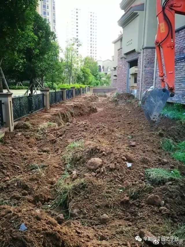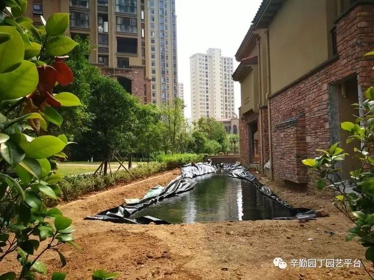2、开挖时注意水平面,水平高低差大了,池塘黑边不好看
