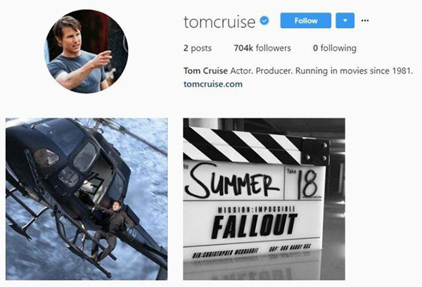 这两年,为了给《壮志凌云2》(预计2020年上映)和《碟中谍6》做准备,他又进行了大量的特技训练。2018年初,阿汤哥就在instagram上发布了一张电影中徒手扒飞机的剧照,瞬间笼络了70万粉丝。想在短期内完成直升机驾驶课程,成为拥有2000小时飞行经验的新手驾驶员,他至少也需要3个月每天8小时的训练强度。