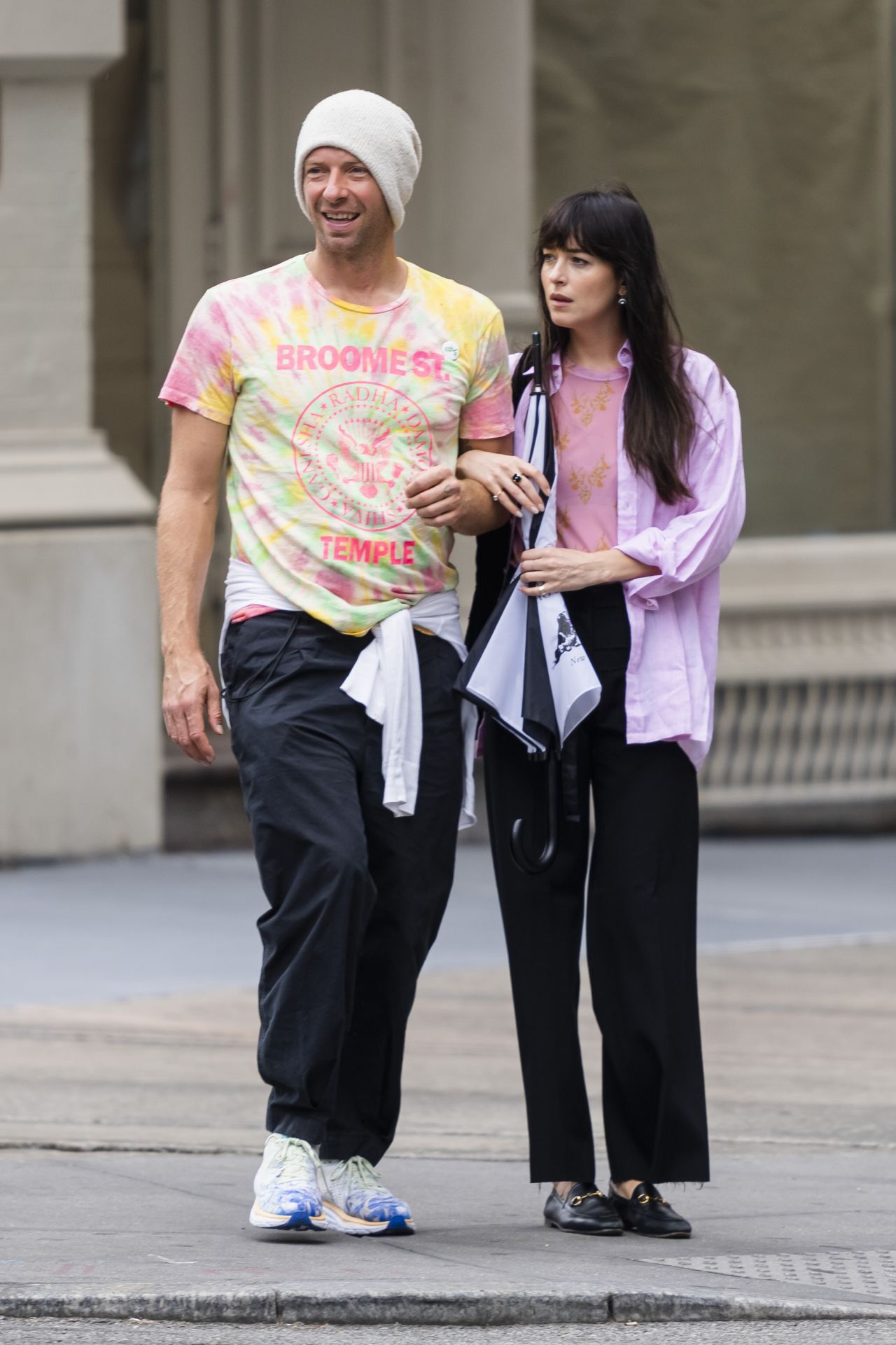 "电影《五十度灰》女星达科塔·约翰逊(dakota johnson)和英国歌手克里斯·马汀(chris martin)在纽约街头