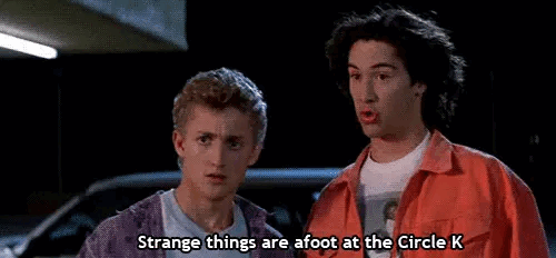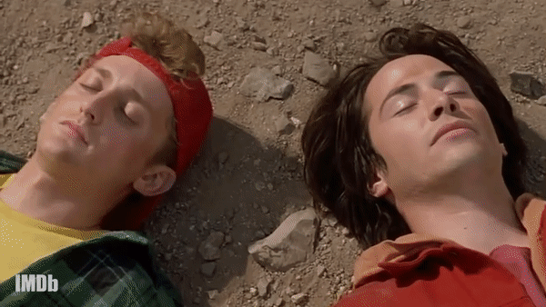 基努·里维斯和亚历克斯·温特在电影《比尔和泰德畅游鬼门关》(1991)中的影像