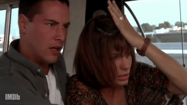 基努·里维斯和桑德拉·布洛克在电影《生死时速》(1994)中的影像
