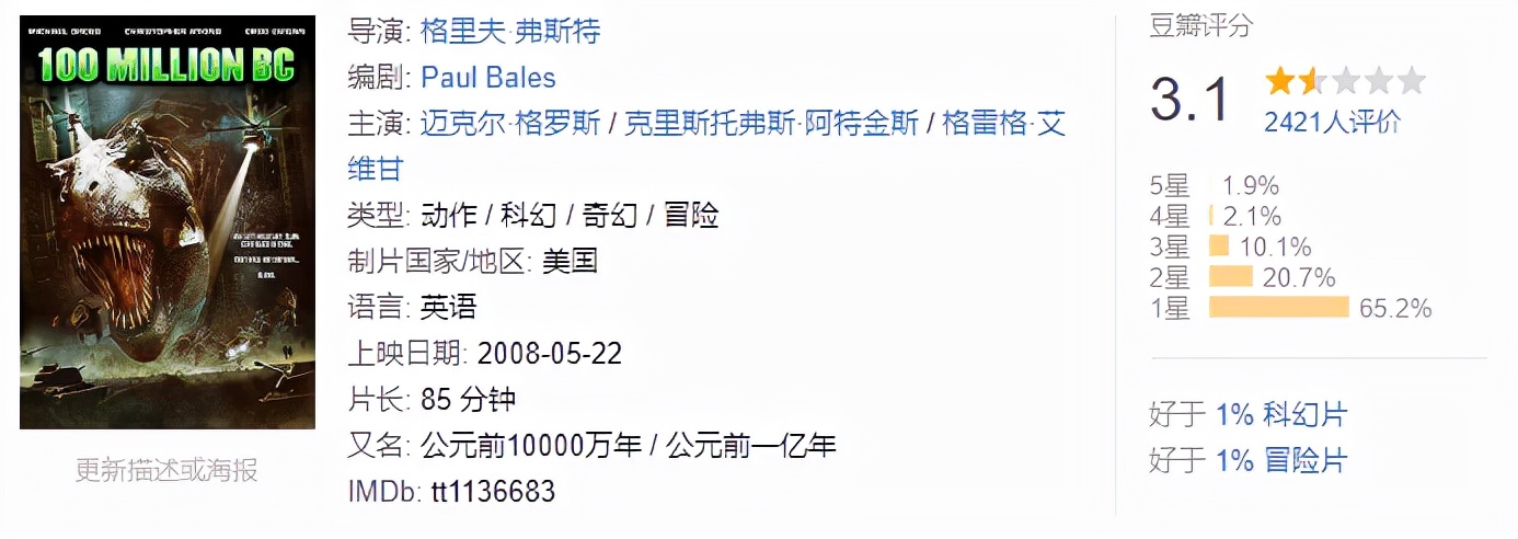 7.山寨《史前一万年》------《史前一亿年》豆瓣评分3.1分