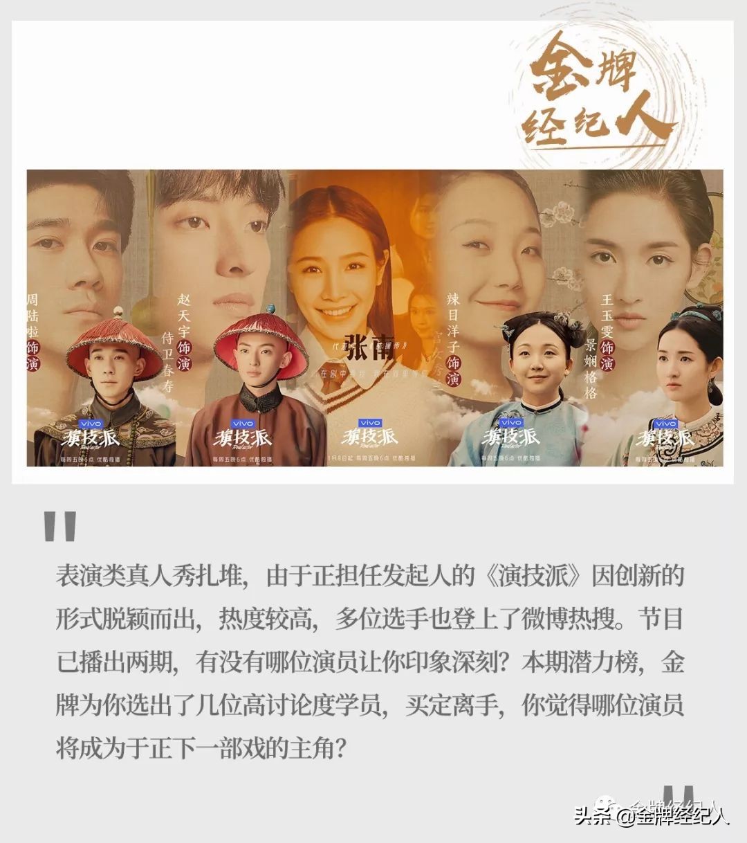 参加《演技派》之前,周陆啦一直活跃在话剧舞台上,《长安十二时辰》是他目前为数不多的影视剧之一。虽然出演了戏份不多的太子,但看过剧的人都会对这个角色有深刻印象,颇具记忆点。其实近一两年来周陆啦才开始尝试参与影视剧的拍摄,这对此前在舞台剧已小有名气的他来说也是一种挑战,不过通过这次节目,观众可以发现他作为演员的质感和在线的专业素养,发光只是时间问题。