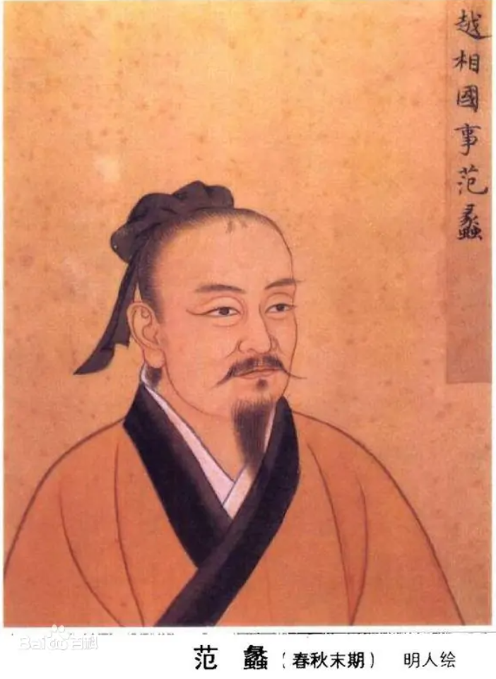 范蠡为中国早期商业理论家,楚学开拓者之一。被后人尊称为“商圣”,"南阳五圣"之一。虽出身贫贱,但博学多才、文武双全 。与楚宛令文种相识、相交甚深。因不满当时楚国政治黑暗、非贵族不得入仕而一起投奔越国,之后被拜为上大夫、相国,辅佐越国勾践。他帮助勾践兴越国,灭吴国,一雪会稽之耻,成就霸业,又被封为上将军。功成名就之后急流勇退,化名为鸱夷子皮,遨游于七十二峰之间。期间三次经商成巨富,三散家财。后定居于宋国陶丘(今山东省菏泽市定陶区南),自号“陶朱公”, 公元前448年,范蠡卒,时年88岁 。至唐朝唐德宗建中三年(782年),配享武成王庙,被追封为古今六十四名将(武成王庙六十四将)之一 ; 宋朝时期,配享武庙。