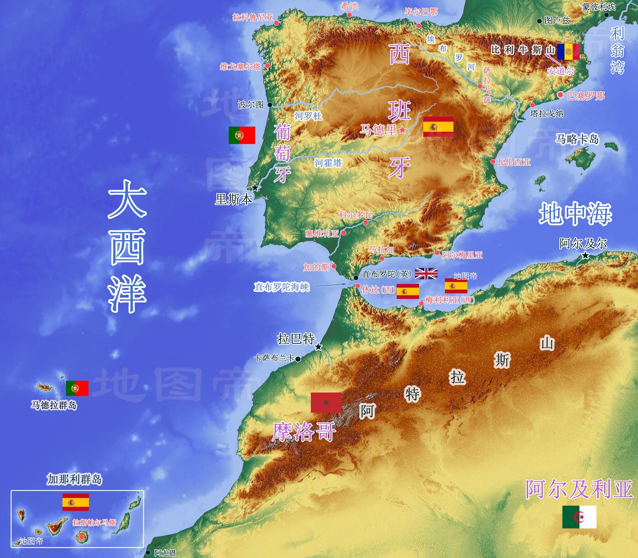 稍微有地理常识的人都知道西班牙位于欧洲西南,与北非国家摩洛哥只隔着一条直布罗陀海峡。但西班牙还有以下几块特殊的领土: