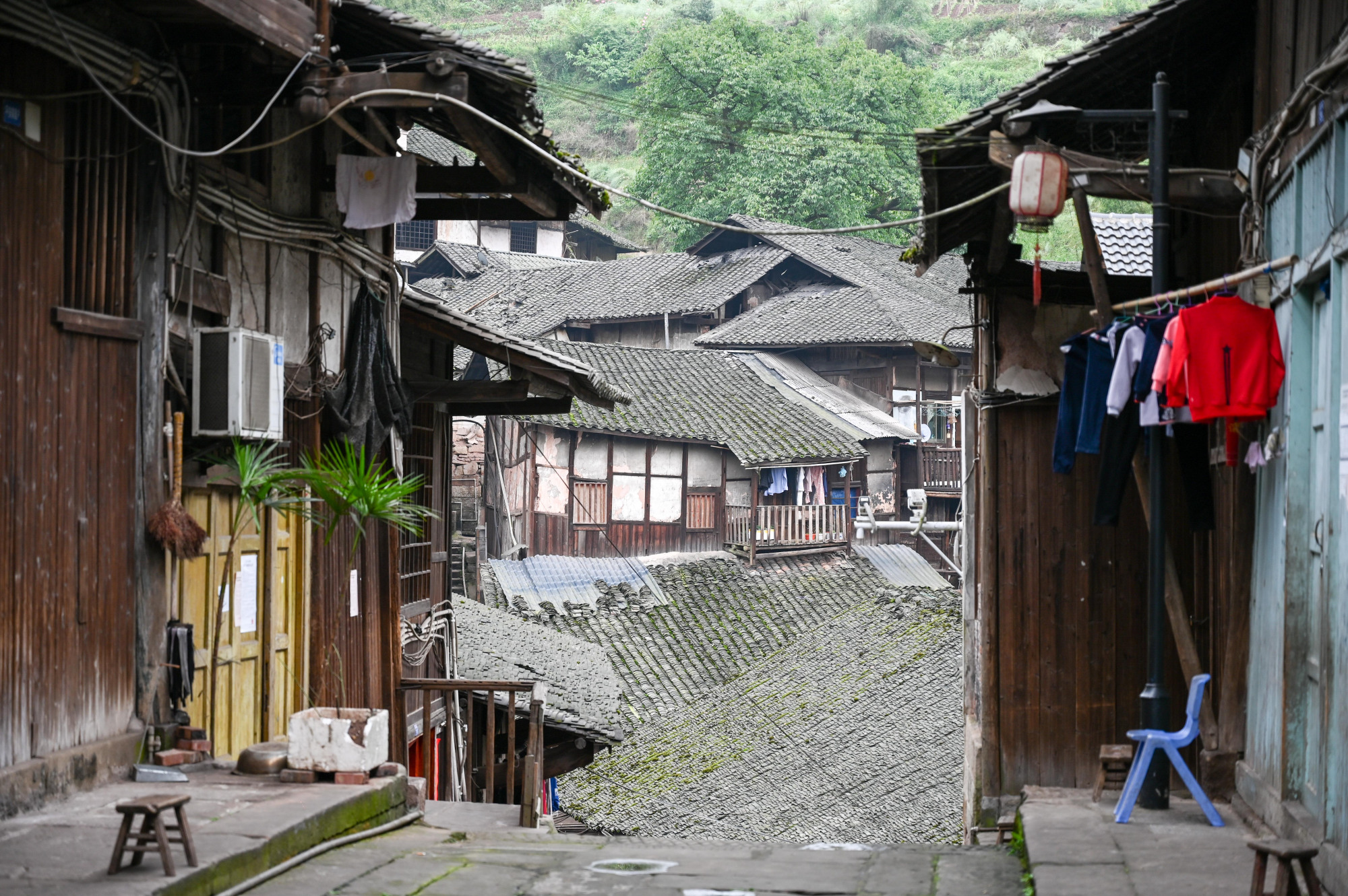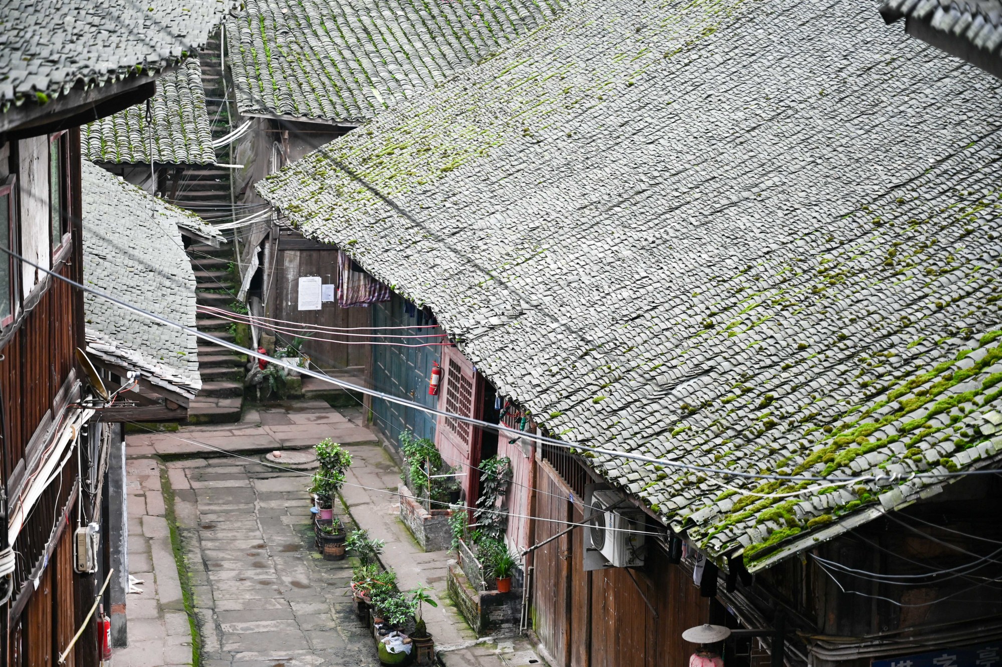 古镇里历经百年磨难的石板路面,一块接着一块,曲折却坚定地爬坡上坎,悄无声息地消失在深深的小巷中,一幢幢沧桑的老房子,书写着的历史记忆,尤如条石路面,恍惚而坚定。