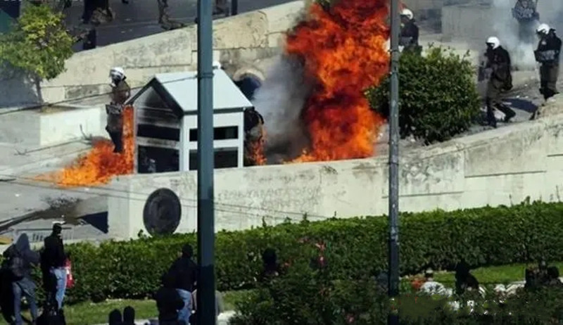 2011年12月26日,中国小伙刘强火烧靖国神社,神社基座和顶上的国旗被点燃。
