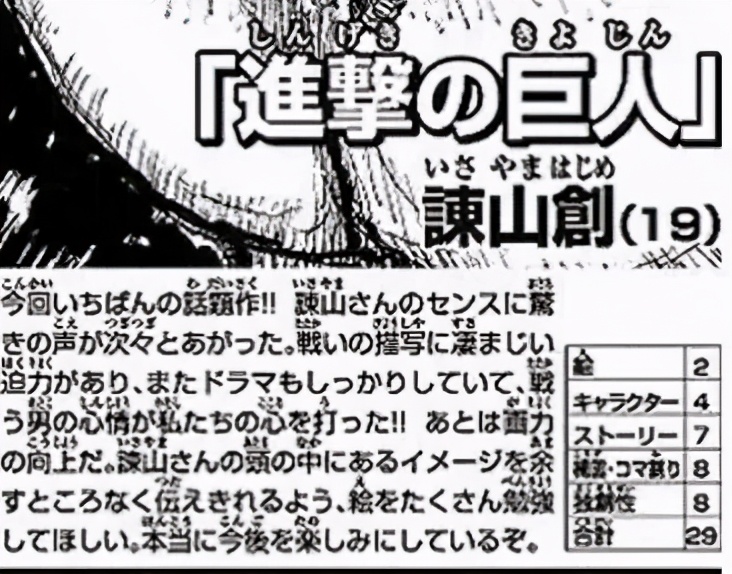 2006年,年仅20岁的谏山创向全日本发行量最大的漫画杂志「周刊少年jump」,递交了自己的手稿。