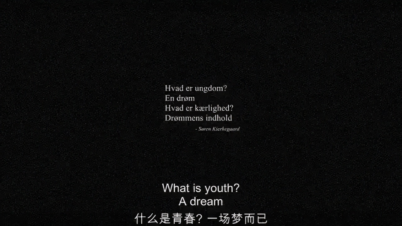 片头字幕引用丹麦哲学家克尔凯郭尔的句子:“青春是什么?一场梦而已。爱是什么?梦境内容。”