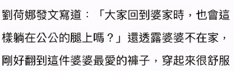 刘荷娜和公公这一亲密举动很快就引起了网友们的讨论,有网友认为这样的行为不好,还有网友觉得作为媳妇躺在公公身上并不合适。