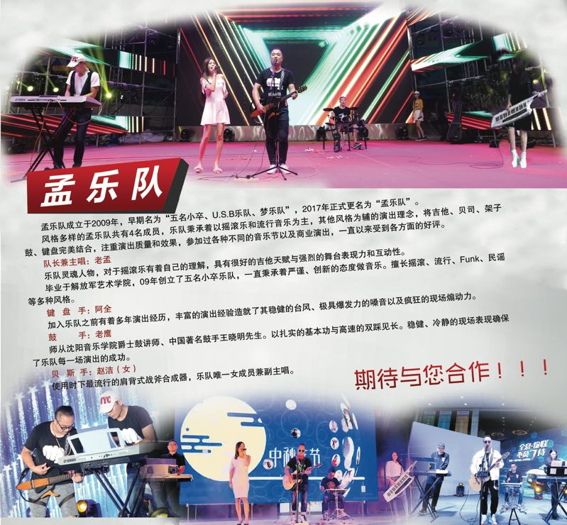 成立于2009年,早期名为"五名小卒、usb乐队、梦乐队",2017年正式更名为"孟乐队"。