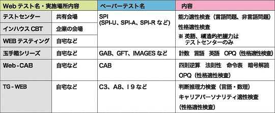 公司出题的web test可以在家完成,数学题部分因为要在短时间内做完大量计算,一些学生会请朋友帮忙、或者干脆找数学好的朋友代考。 《何者》里也有提到,就职期间的web test是大学生们检验彼此友谊的一种方式;二阶堂富美演出的角色因为数学不好而屡屡在web test中惨败,佐藤健和菅田将暉便猜测她没什么朋友。 除了公司出题的形式以外,更多的公司则是接受test center的考试成绩。test center的成绩虽然可以在两年内反复使用,但由于分数不公布给学生,而由网站直接发送给企业,所以有一定的风险因素。要参加这种考试需要网上预约日程和考场(以关东为例,考场都在东京),届时到指定会场参加统一测试(机考)。