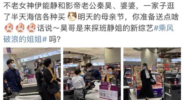 有网友称在超市偶遇了伊能静和老公及她婆婆,一家子逛了半天各种买买买,并且曝光了自己当时拍摄的偶遇照片。伊能静一家三口都带着口罩,并且装扮整齐。