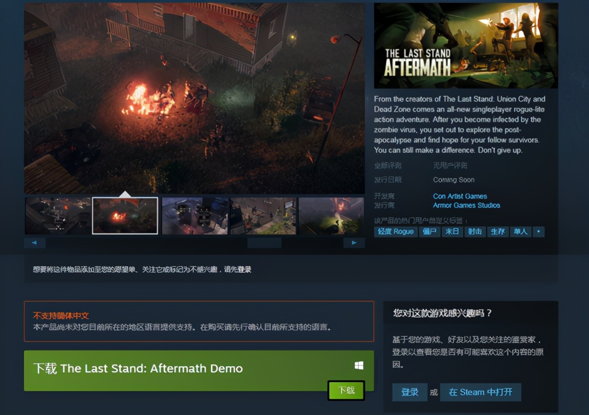 《最后一战:末日》是由con artist games开发、armor games studios发行的一款第三人称血腥暴力生存类动作冒险游戏。近日本作正式上架steam商店,限时试玩版已经上线steam游戏节,游戏暂不支持中文。