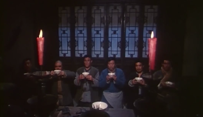 电影一开始,鄂世臣6人歃血为盟,相约共同夺宝、共举大义,结果得到财宝后,被“财遮眼”的众人相继违背誓言,结果一个个惨死,唯有信守誓言的关友云,得以善终。