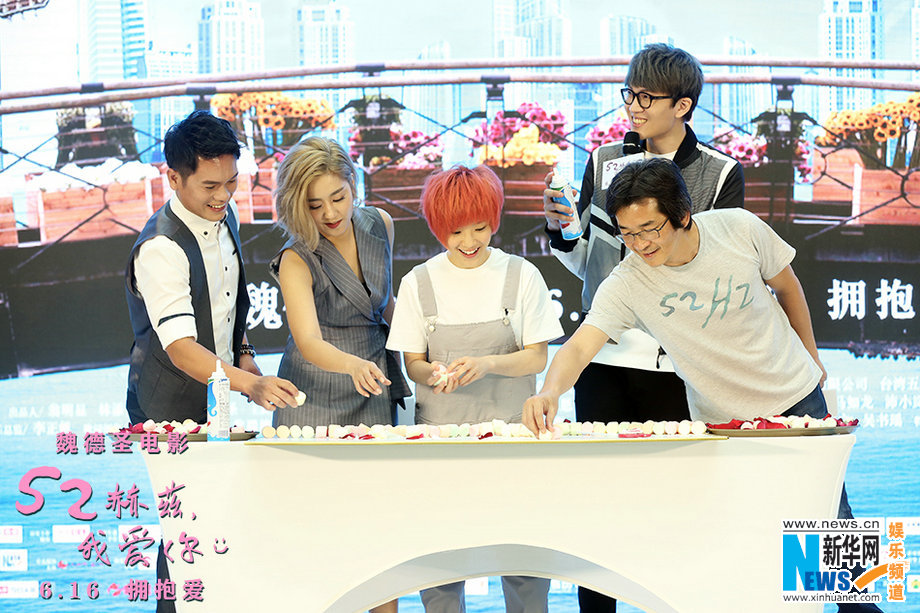 爱情就该像甜点般甜蜜!据悉,电影《52赫兹,我爱你》作为魏德圣献给大陆观众的一道甜品,讲述了几段“甜点”般的浪漫故事。影片中,无论是追寻爱情的孤单男女,备受经济压力的长跑恋人,亦或是不被认同的同性情侣、受世俗羁绊的中年男女,都在拥挤都市中遇见“甜点”般可口浪漫爱情,幸福感爆棚。而为了呼应电影中“甜点”般幸福感,四位演员亦现场亲手制作爱力满满的甜点彩绘,力求将甜蜜滋味传递到世界每个角落。而首映现场,四位演员也讲述了对“没有爱情就是伤害”这句电影中经典台词的不同理解:“没有爱过就没有对爱的深刻体会”并深情演唱影片主题曲《52赫兹,我爱你》、《阳光雨》。专业歌手级别的声音极具穿透力,情感十足,令现场观众陶醉。“这四位主演其实都是第一次参演电影”,被问及为何邀请新人演员做主演,魏德圣如是说,“音乐剧电影需要很能唱,而他们四位乐团主唱虽然是新人,但是能唱能演,完美符合我的要求!”虽然受到表扬,仍然止不住四位演员在现场吐槽。“导演要求很高”、“边骑摩托边唱歌,电影现场收音,拍了20遍才过”。此外小球还现场爆出令人大跌眼镜的魏导“怪癖”:“导演是个很神奇的人,焦虑的时候不会对我们发脾气,而是偷偷去拔草、剥树皮”并以“自捶心肝”的夸张姿态形容魏德圣焦虑时候的样子,令现场观众捧腹大笑。