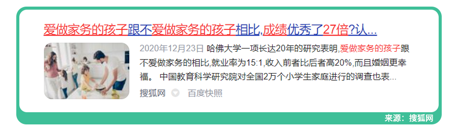 “爱做家务的孩子跟不爱做家务的孩子相比,成绩优秀了27倍!”