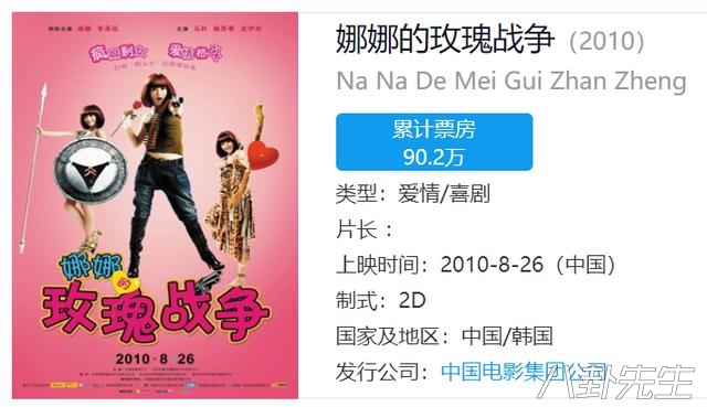 2010年的《娜娜的玫瑰战争》票房更可怕,只有90.2万,相当于“查无此电影”的状态▼