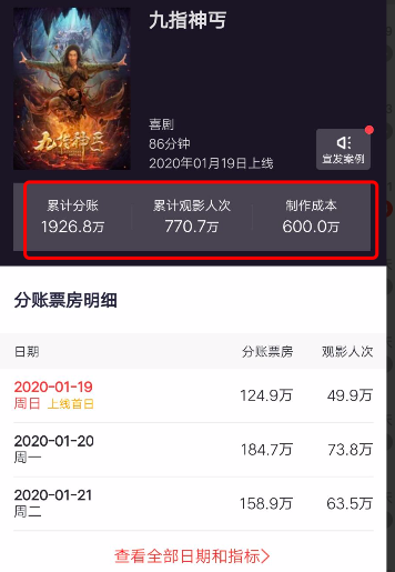 这一部电影的成本只有600万,然而截至到了发稿日,分账票房达到了1926万。