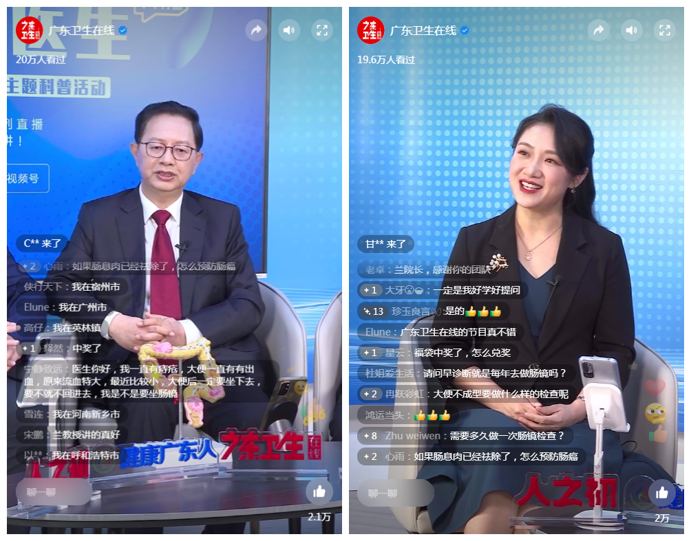 整场直播主要分为科普讲解和现场答疑两部分。兰平教授团队首先从肠癌发病趋势、高危因素、筛查方式、诊疗和预防等方面,为大家科普肠癌防治中的常见疑惑。