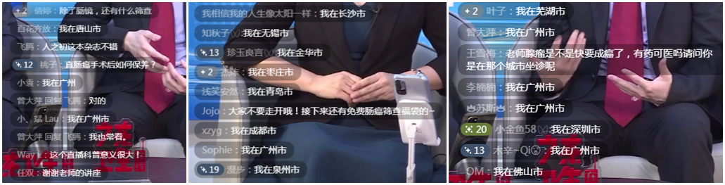 经过预热,主持人、中山大学孙逸仙纪念医院检验科副主任检验师谢晓英开场后,三分之内就涌入了上万人观看,观众互动气氛热烈,留言提问持续刷屏直播间。此外,还对大咖上线讲科普热情点赞。