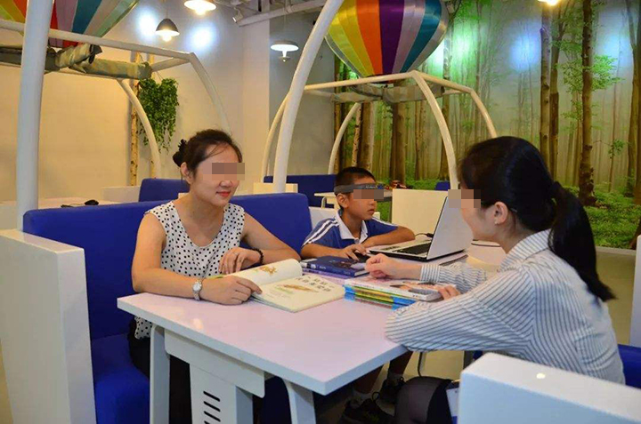 小君妈妈是四十多岁生的小君,全职照顾小君的生活和学习,因为文化程度不高将孩子送到晚托班辅导作业。她有一点和其他家长不同的是,将孩子送到教室后她会坐在前台休息区一直到晚托放学。