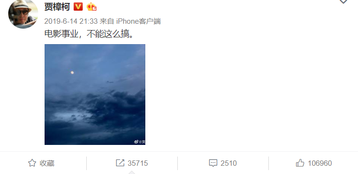 7年之后,贾樟柯在去年又发了一条微博: