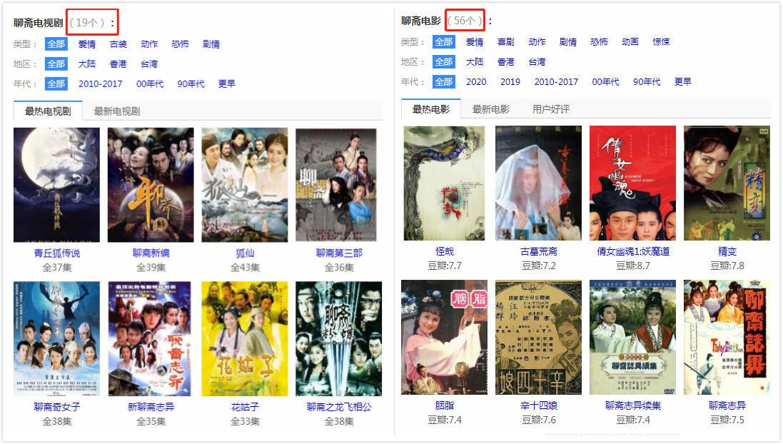 从目前可搜到的改编自《聊斋》的影视剧,就有近百部。