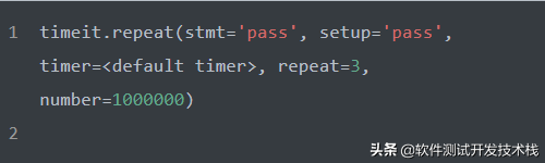 不难看出,timeit 还是比较灵活简单的。接下来,我们深入的了解一下 timeit 模块常用的两个函数 。