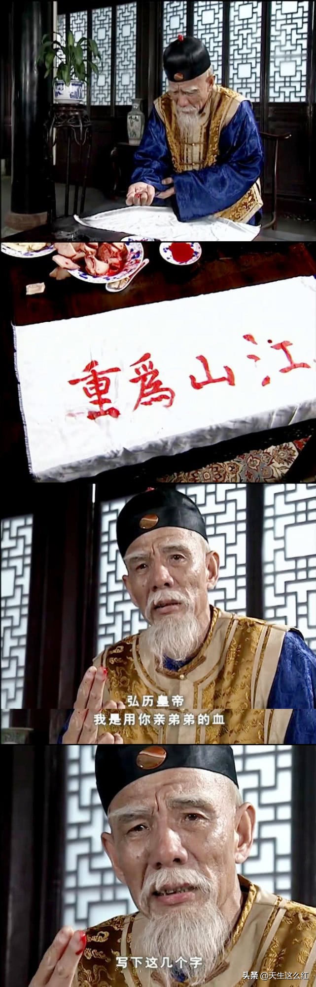 陈阁老甚至蘸着陈邦国的血,写下了点题的那四个大字:江山为重。