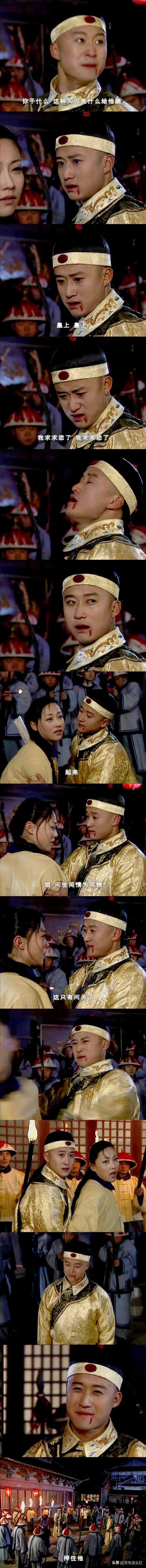 这版弘历大概确实是武力值最高的了,从小被雍正送去学练血滴子,最后铲除十四王爷势力的时候,是他跟十四王爷单打独斗定输赢的,要是历史上的宫变真的都能靠两边的老大决斗来解决就好了,能省去多少无辜生命的牺牲啊。