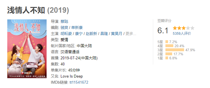 《浅情人不知》是由安徽广播电视台、强盛影视、剧浪影视联合出品,罗法平任总出品人,许文俊任总制片人,李丹任监制,蔡聪执导,虢爽、单新康编剧,胡耘豪、康宁、赵毅新、张子璇、王小白、昌隆、李政阳等主演的都市情感治愈偶像剧 。