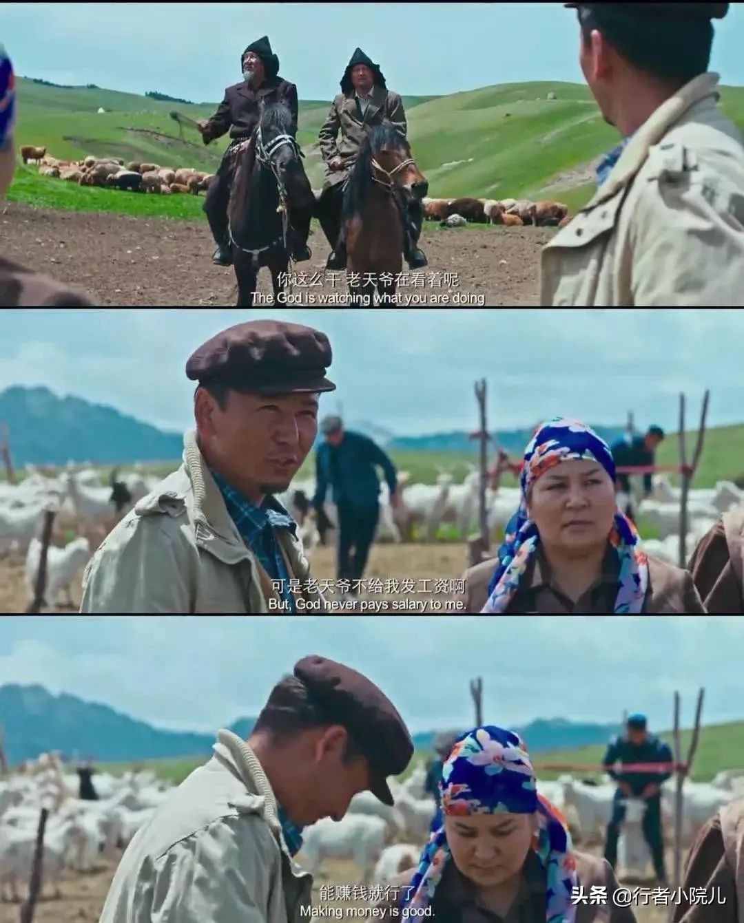 《远去的牧歌》,讲述了在全国改革开放浪潮的影响下,哈萨克民族的游牧生活在80年代、90年代以及千禧之年后的历史变迁,没有夸张、没有矫揉造作、没有各种炫技手法,只有娓娓道来的真实,像是一部历史影像的纪录片,处处是生活。而生活之中的人和事儿,无不在改革开放的大时代背景之下,潜移默化的被影响着和改变着。影片,不负我望,深得吾心!
