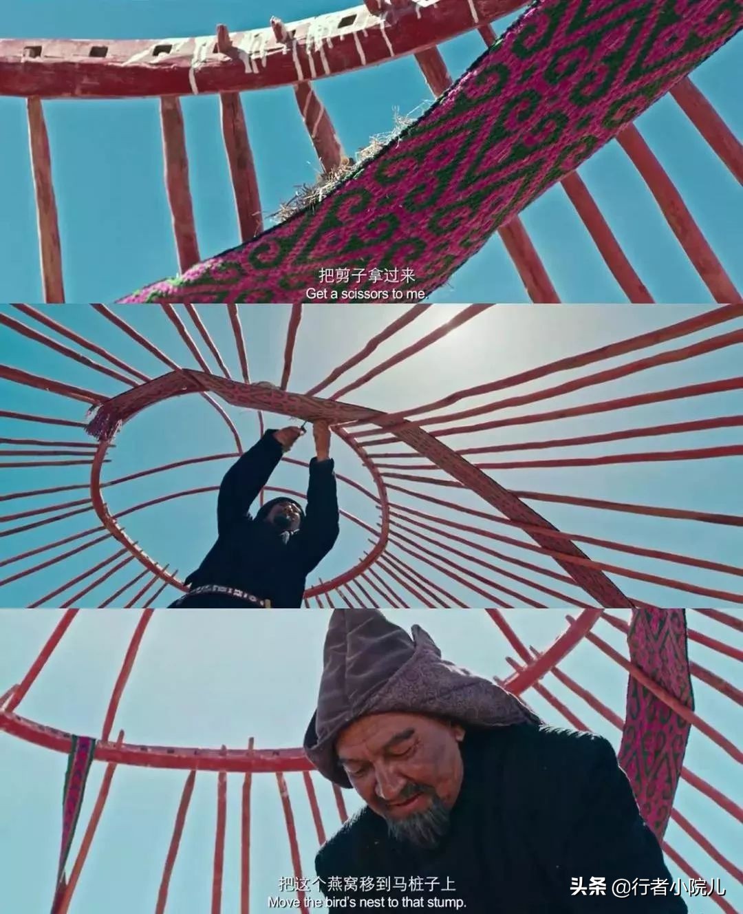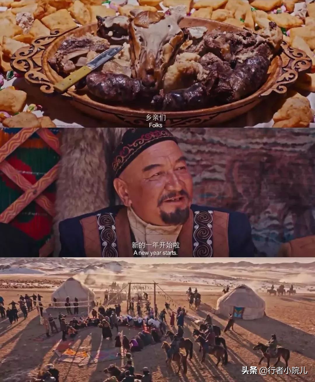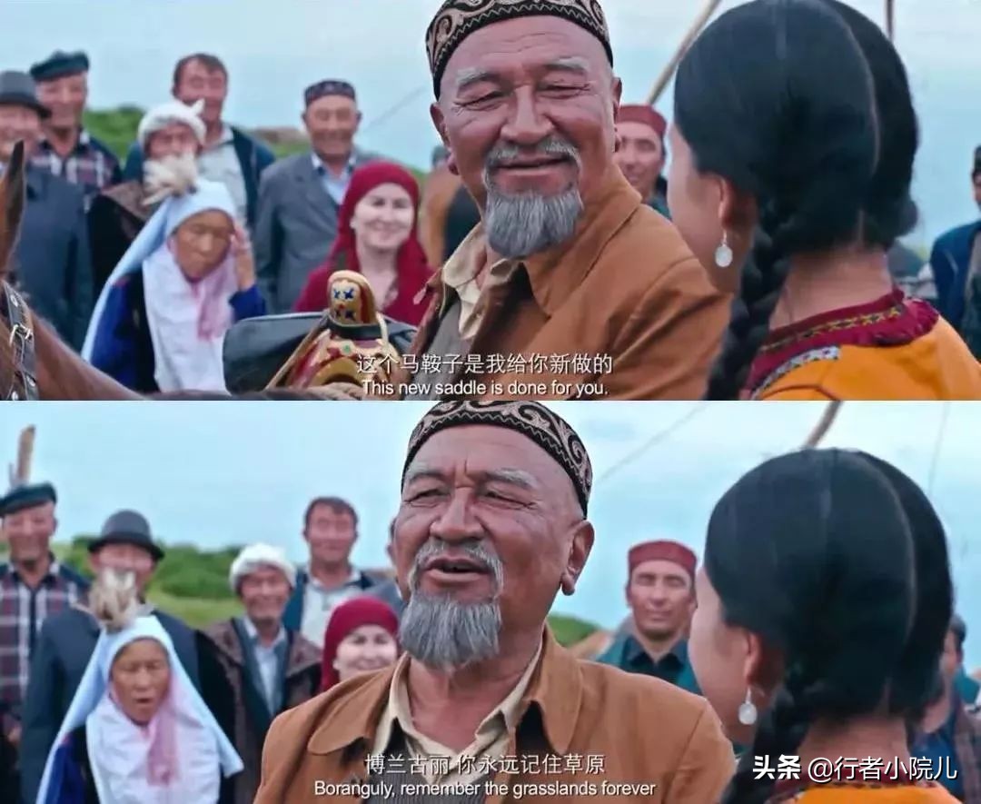 影片中的很多生活场景,即使放到现在,仍能在柯尔克孜族和哈萨克族老乡的生活中司空见惯,所以,我认为,“牧歌”远去的是牧民生活的艰辛,而那些能够承载民族风俗记忆的鲜活生活方式,比如,热气腾腾的马奶子酒及奶茶、牛粪烤制的塔巴馕、香甜如糯的波尔萨克、各种喜庆节日中欢快的黑走马、风格迥异的被褥抱枕、慈祥坚毅老人的貂皮帽等还在一代代传承着;而运载生产生活物资的原始雪橇、疾驰如飞的骏马、可爱的羊群、美丽的牧场、鲜艳的民族服饰以及固若磐石的大毡房等等,更是在改革开放的浪潮中变成了吸引四面八方游客的靓丽名片。